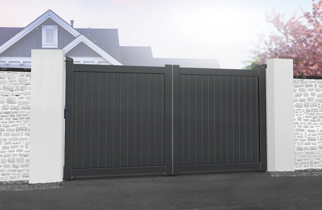 Double Swing Gate – Solid vertical infill flat top