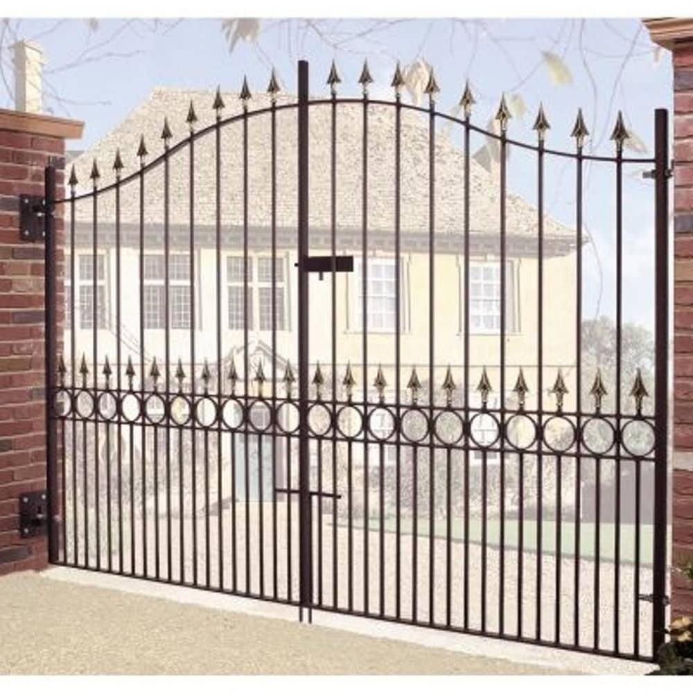 Balmoral premium range tall shaped top metal estate driveway gates with spear finials.