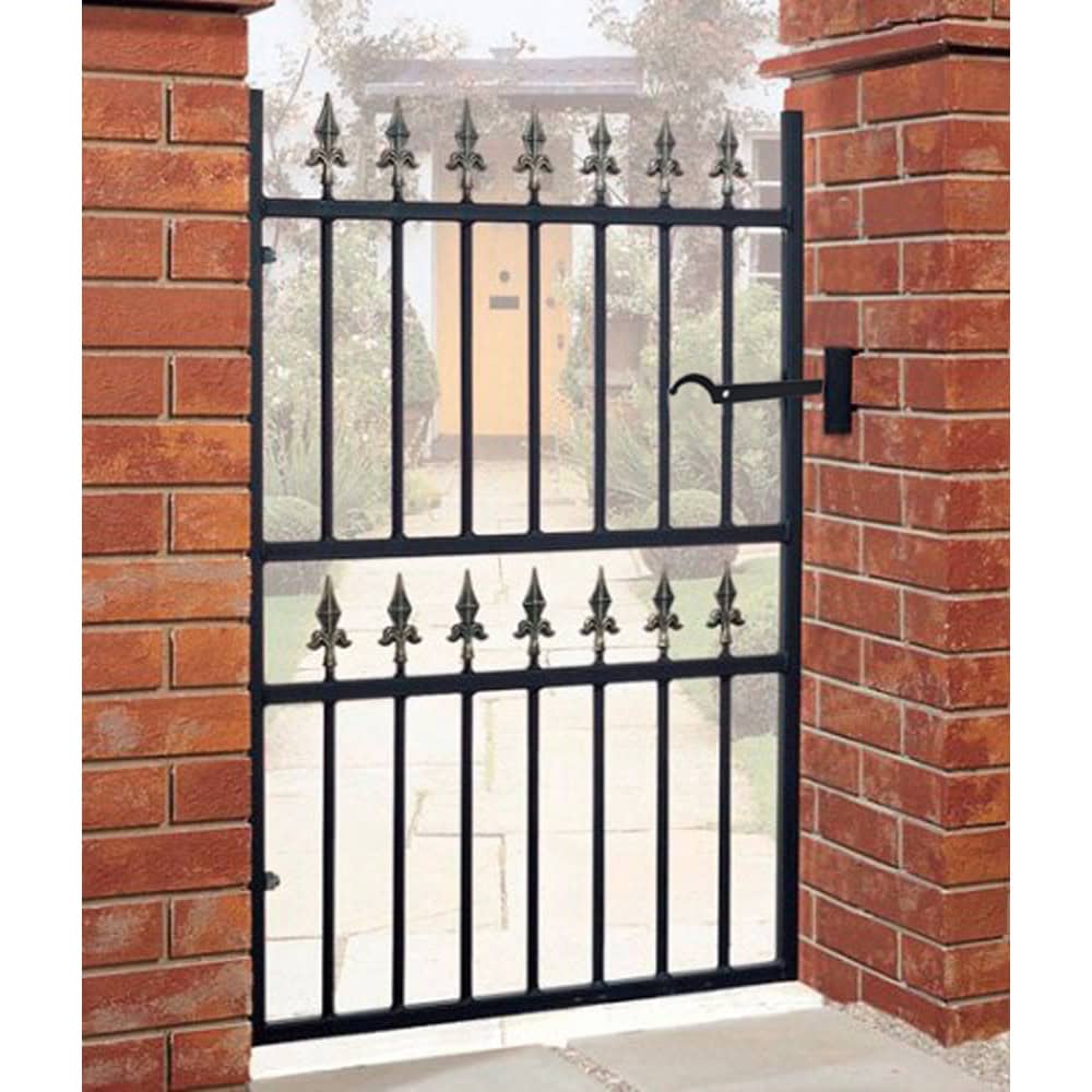 Corfe premium range fleur-de-lys spear top metal garden gate.