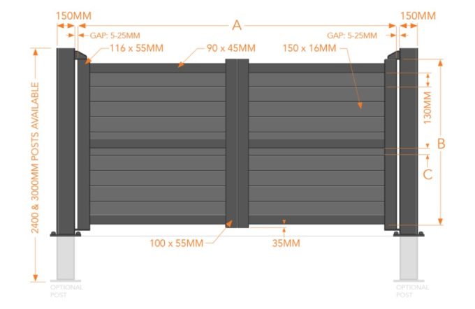 The RMG002DG is a full privacy driveway gate with a horizontal solid infill and flat top, providing a modern and streamlined design.