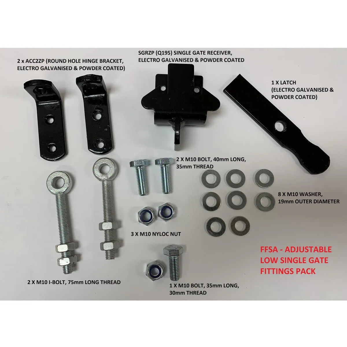 Fittings included; comes with angle brackets, bolts, tip latch & catch. (No screws or wall plugs included) Nuts and bolts must be painted after fitting to prevent the onset of rust. Note: The latch is not as shown on the main image, it is a standard universal tip latch & catch.