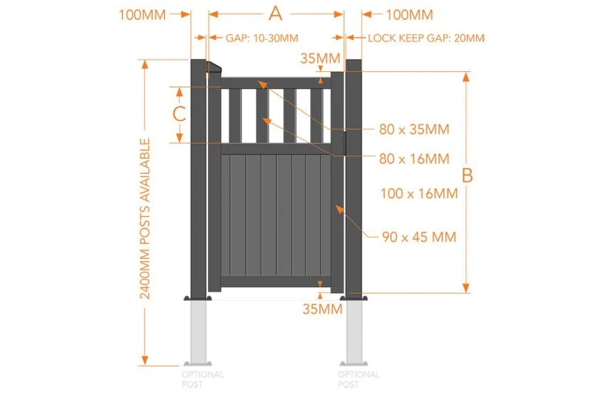 Partial Privacy Pedestrian Gate – Solid vertical infill