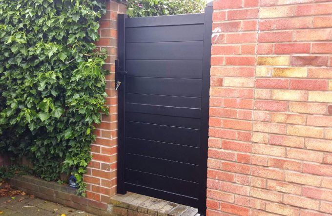 The RMG002PG is a fully boarded pedestrian gate with a horizontal solid infill and flat top, providing full privacy with a modern and streamlined design.