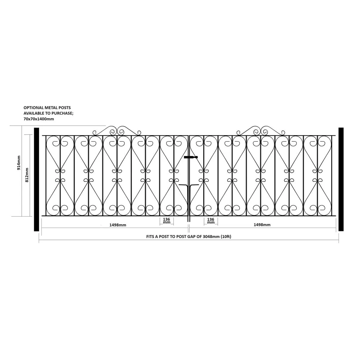 Driveway gate fits a total post to post GAP as stated in the size selection. Gate frame height is 812mm and 914mm to top of scrolls. We already account for the hinge and latch gaps within the width measurement listed.